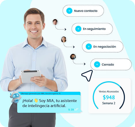 No hay embudos, etapas ni tareas por lead. Solo gestiona conversaciones, sin seguimiento comercial. Pierdes visibilidad del proceso de ventas.